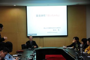 2012年10月20日星期六,日本南山大学细谷博教授应日语系及日本学研究所邀请,在宏文楼4楼会议室为我系部分教师及研究生、本科生做了题为“从夏目漱石的《哥儿》看日本人形像”的学术讲座,并于讲座结束后进行了深入的交流。