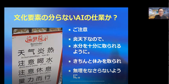 最后,宋教授以旅游景点提示牌的翻译为例,介绍了人工智能(AI)翻译的优势与不足。