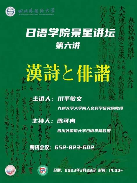 本次讲座的题目为“汉诗与俳谐——融合的诸相”。川平敏文教授分三部分——吸收汉诗文的俳谐、与汉诗对抗的假名诗以及明治时代的新体诗——为全体听众讲授了汉诗与俳谐的融合。