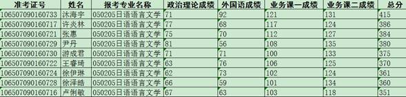 2017四川外国语大学硕士研究生入学考试日语专业第一志愿上线考生复试名单