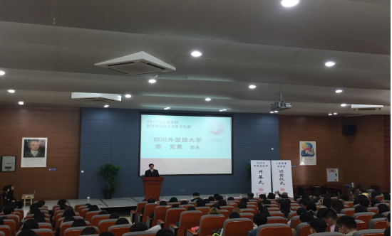 接着三菱商事成都重庆分公司总经理胡兴亚先生向在座嘉宾及师生介绍了三菱商事近些年对待中国自然灾害等方面所作出的各种贡献以及两年对川外日语系捐款扶持文化事业,推动中日交流。胡兴亚先生作为川外日语系88级直系学长,根据自己的工作条件和不懈努力促成对日语系建设发展做出的贡献对日语系各界同学和在校员工都会有重要的激励作用。