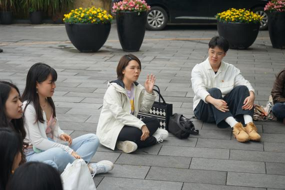 最后,师生们来到了三峡博物馆。首先参观了三峡博物馆的“重庆城市之路”展厅。由宋梓萌同学为大家讲解此展厅所呈现的重庆的发展变化。在这里,通过大量珍贵文物和详尽的历史资料,大家共同回顾了重庆在20世纪中经历的沧桑巨变。从城市变迁到商业金融中心地位的形成,再到工业的崛起,每一步都凝聚着无数先辈的智慧和汗水。