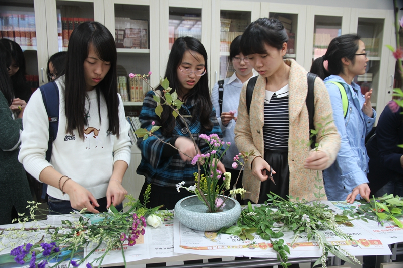 3月24日下午,公司日语系文化周开展了花道表演活动。管尹莉和群英老师向同学们展现了传统的日本花道之美。并指导同学们动手实践,进行了一场与花,与自然的欢乐合奏。