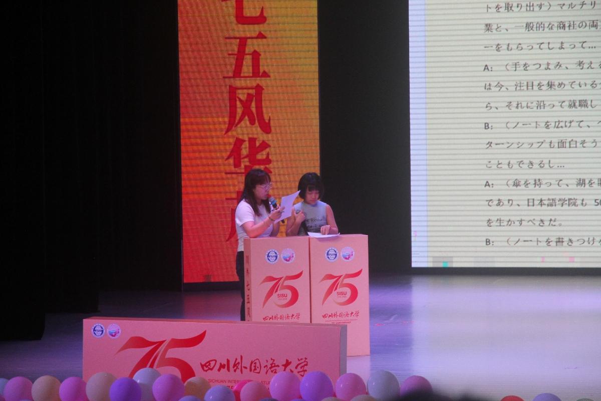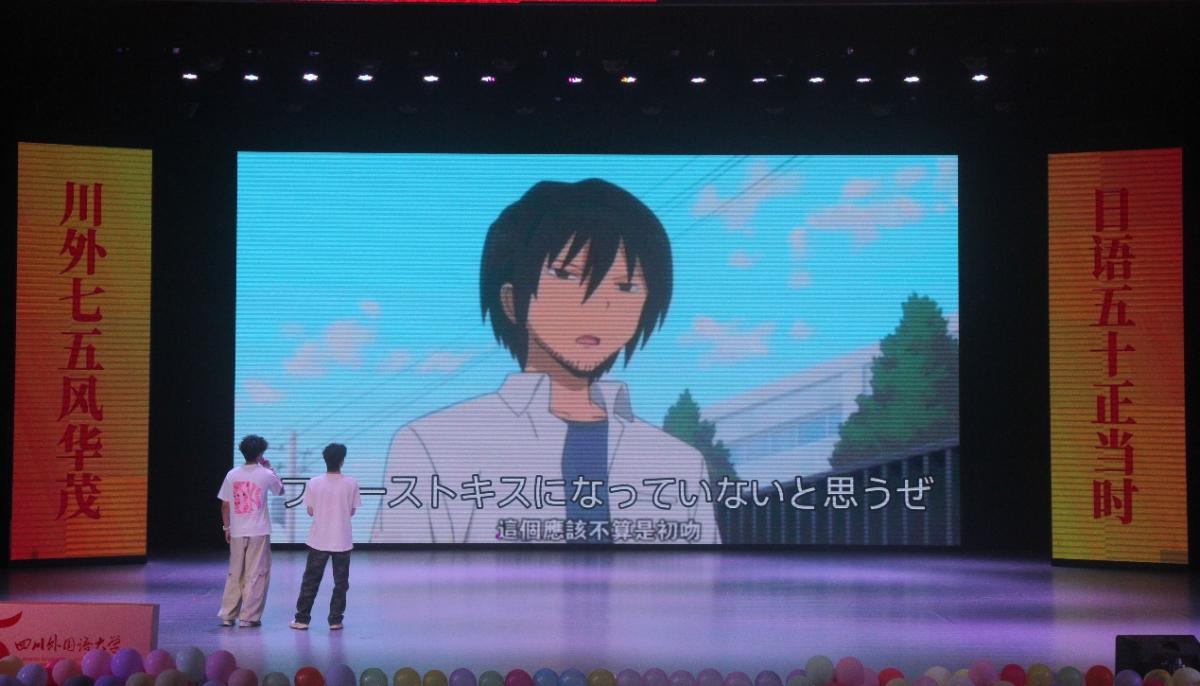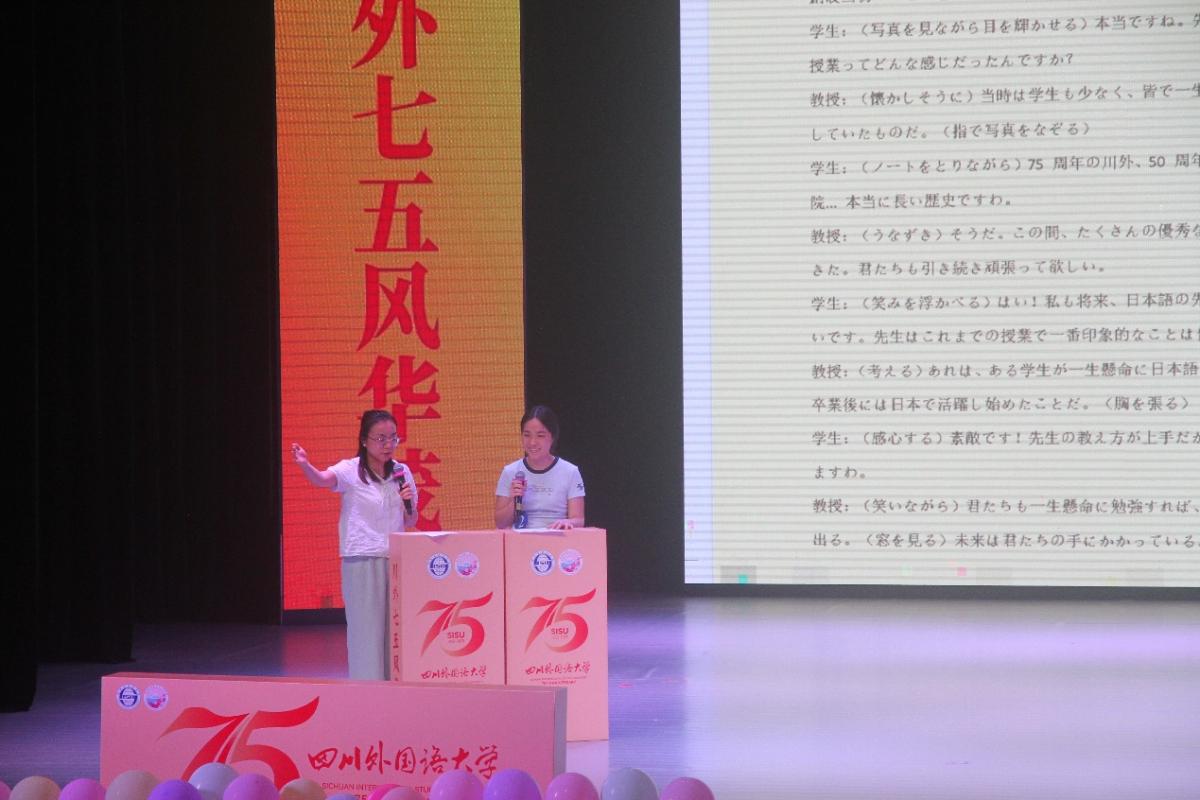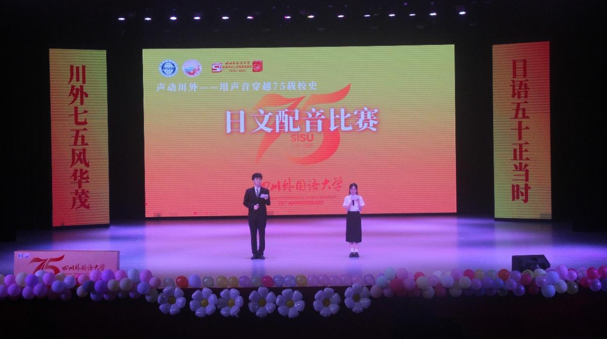 为庆祝建校75周年,金沙js5588于5月7日晚在东区大礼堂成功举办"声动川外——用声音穿越75载校史"日文配音大赛。学院领导罗先明、陈可冉、赵晓燕和师生一同观看比赛。活动以语言艺术为载体,通过专业竞赛形式展现学子风采,回顾学校办学历史和校庆场景,向建校75周年献礼。