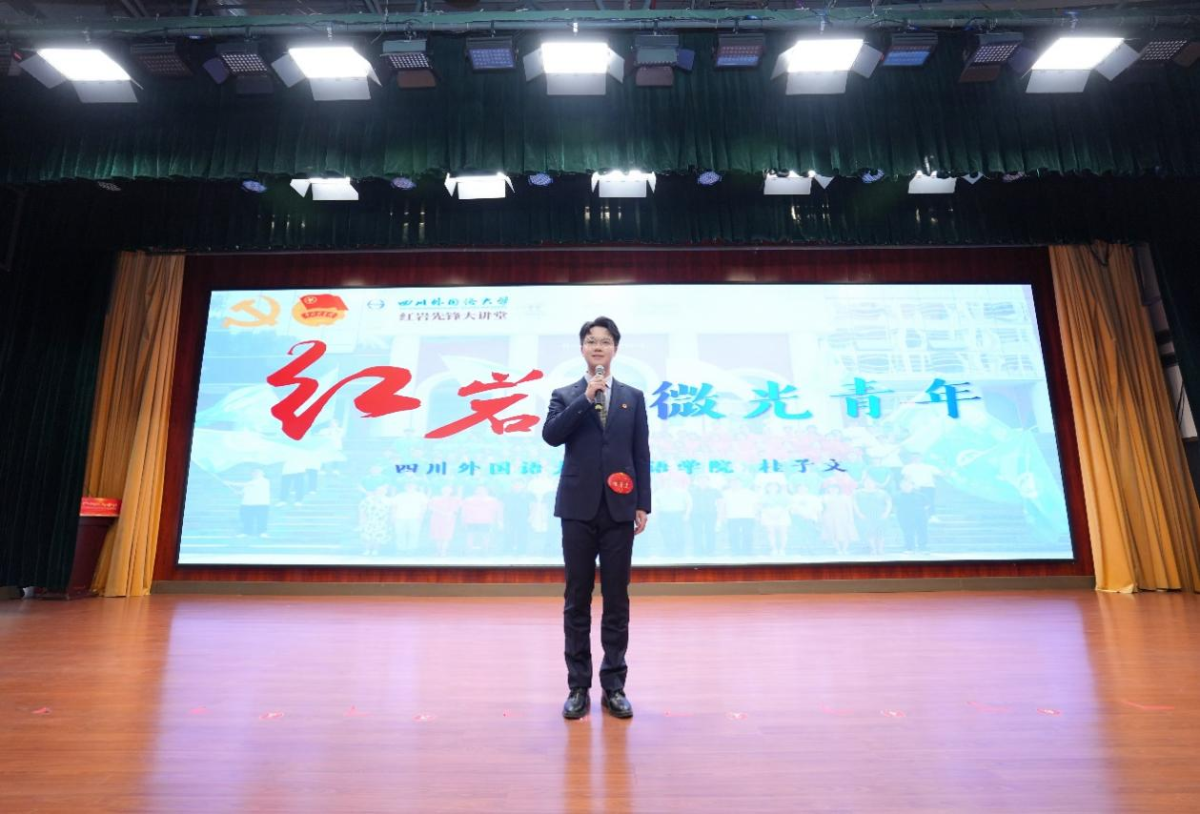 “红岩先锋·大讲堂”环节,桂子文以“红岩·微光青年”为题,展现了公司共青团以研究生支教团、”V小青”多语言志愿服务为载体,积极探索构建“语言+思政”的特色育人模式及“红岩先锋”变革型团组织川外实践成效,彰显了川外青年积极投身志愿服务,争当红岩先锋的向上风貌。