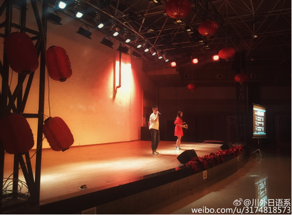 当然,时下流行的比赛现场互动方式微博墙刷屏是少不了的,同学们随手微博刷屏,发布心情词语参与#日语系好声音#话题的评价和讨论,直播整个比赛现场,说出支持的选手,还有的同学在微博墙上放出许多在场老师的日常教学、工作、生活照片,引得现场师生欢声笑语,气氛欢乐而融洽。